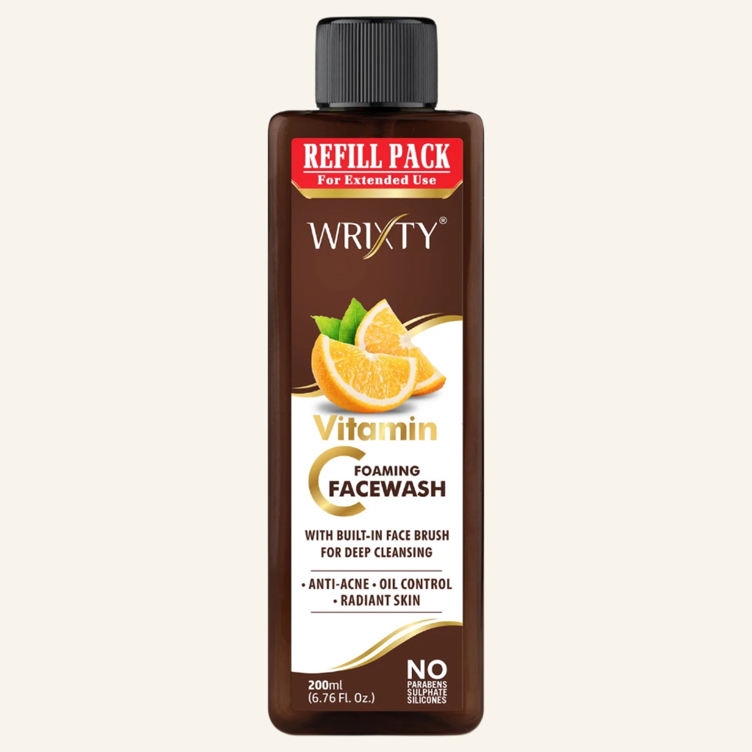 Brightening Vitamin C Foaming Face Wash | Built in Brush for Deep Cleansing | All Skin Type | Glowing Bright Skin | Paraben & Sulphates Free | Face Wash for Women & Men |